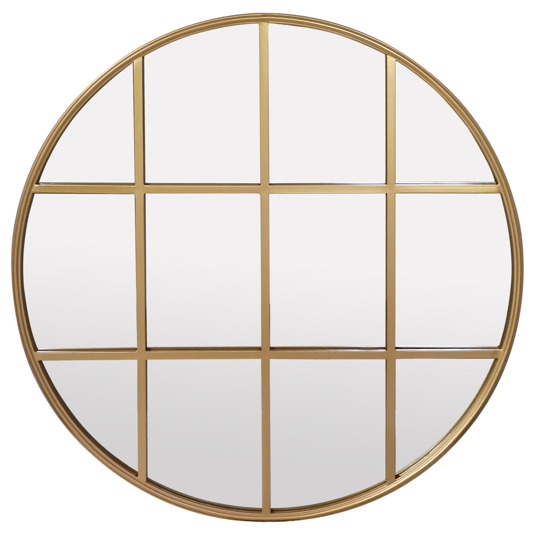 Amelia Gold Rimmed Round Paned Mirror D120cm