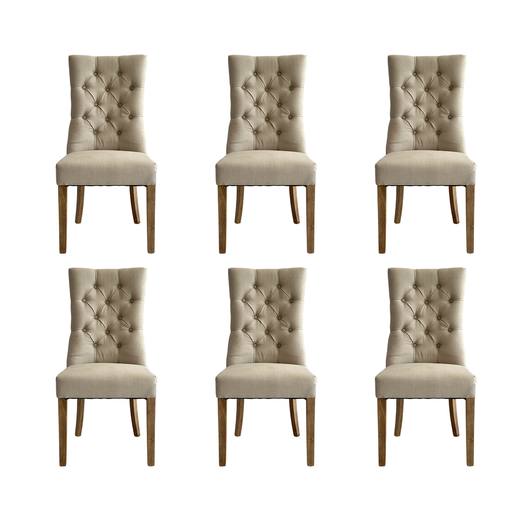 Diana Buttoned Hamptons Dining Chair Beige Linen Blend - Set of 6