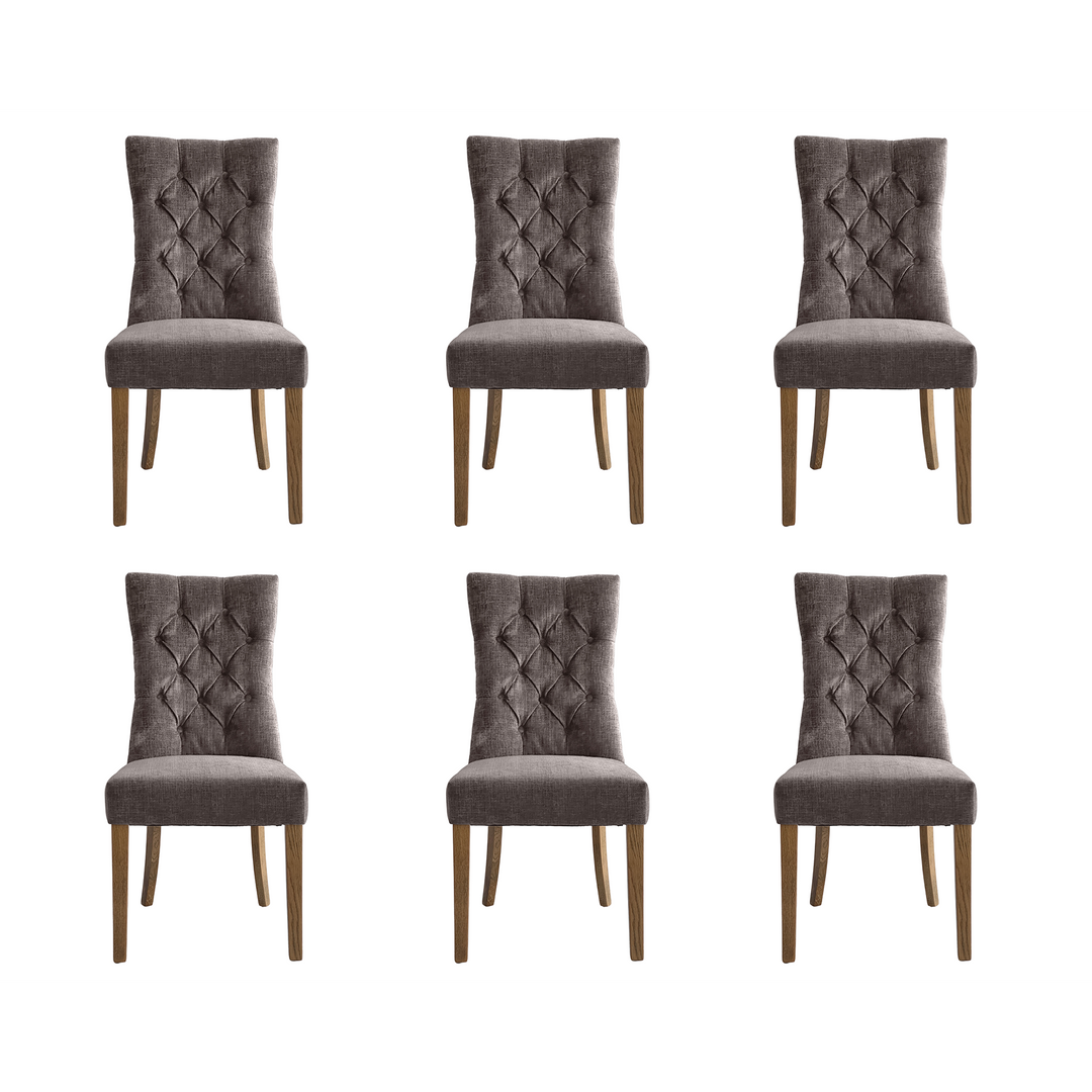 Diana Buttoned Hamptons Dining Chair Silver Linen Blend - Set of 6