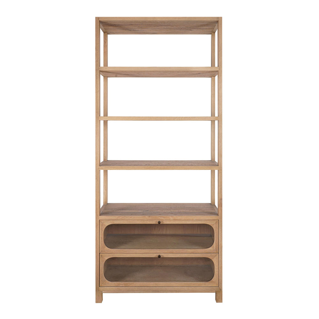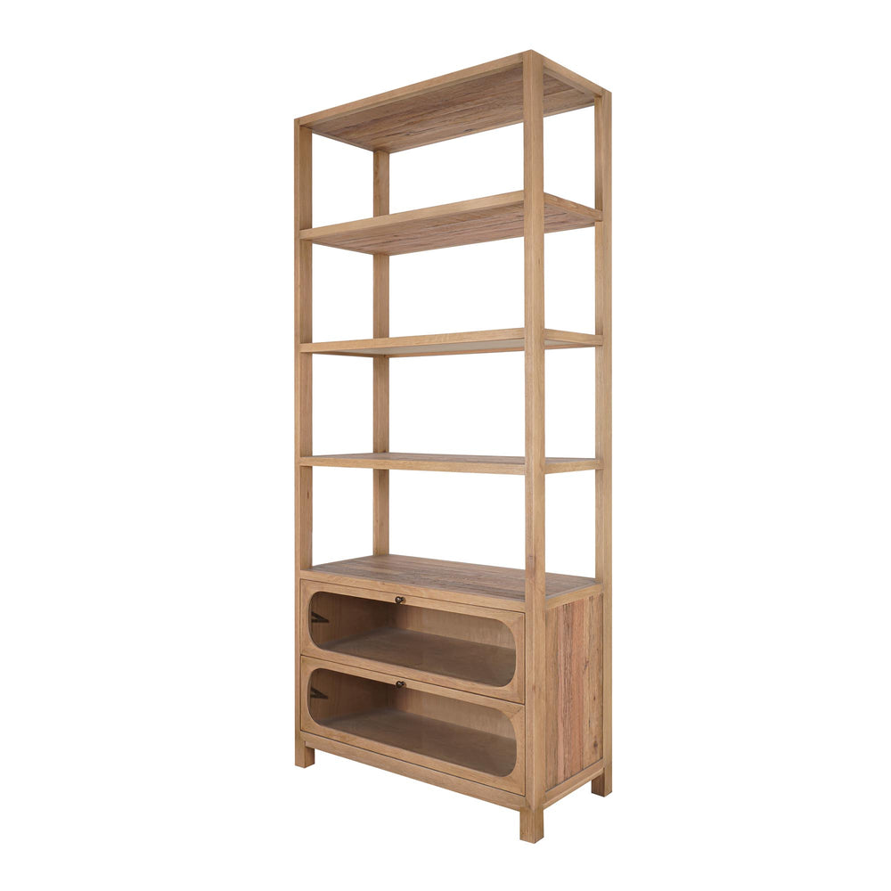 Amelia Reclaimed Oak Bookcase With 2 Glass Doors 230Cm High