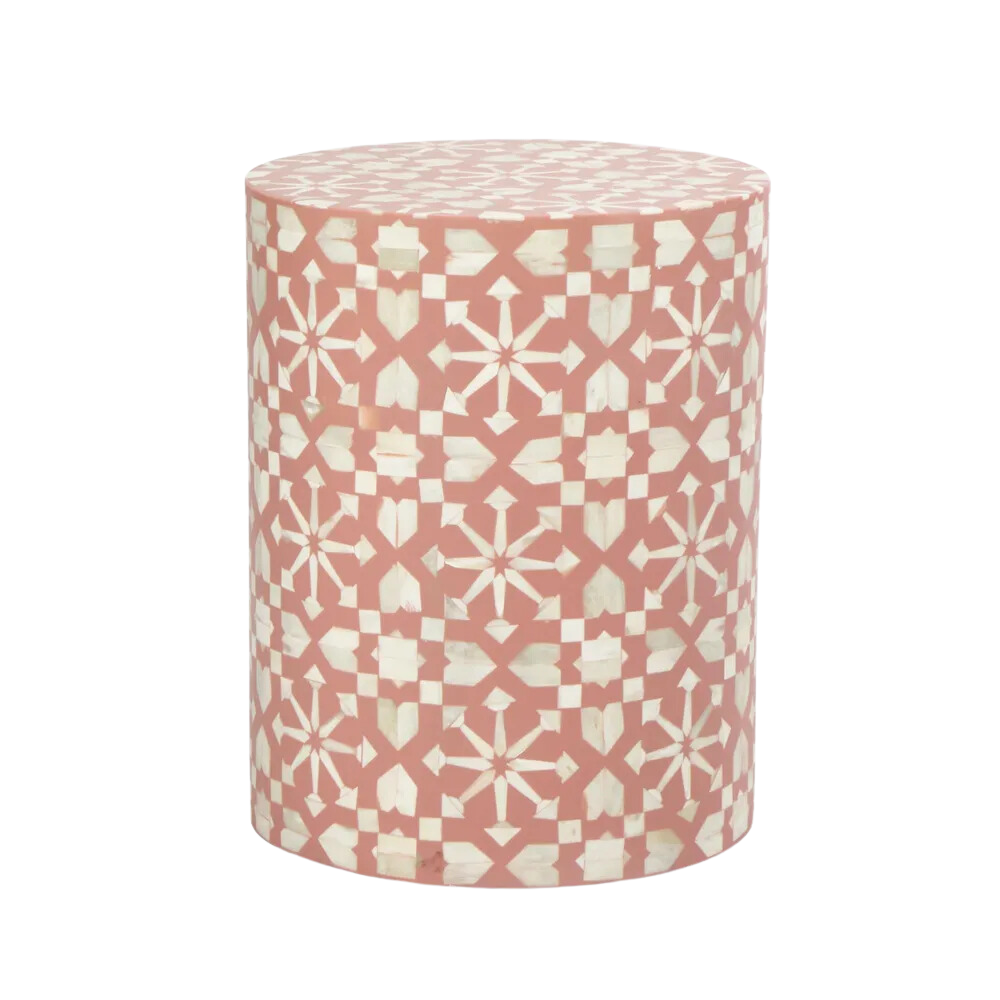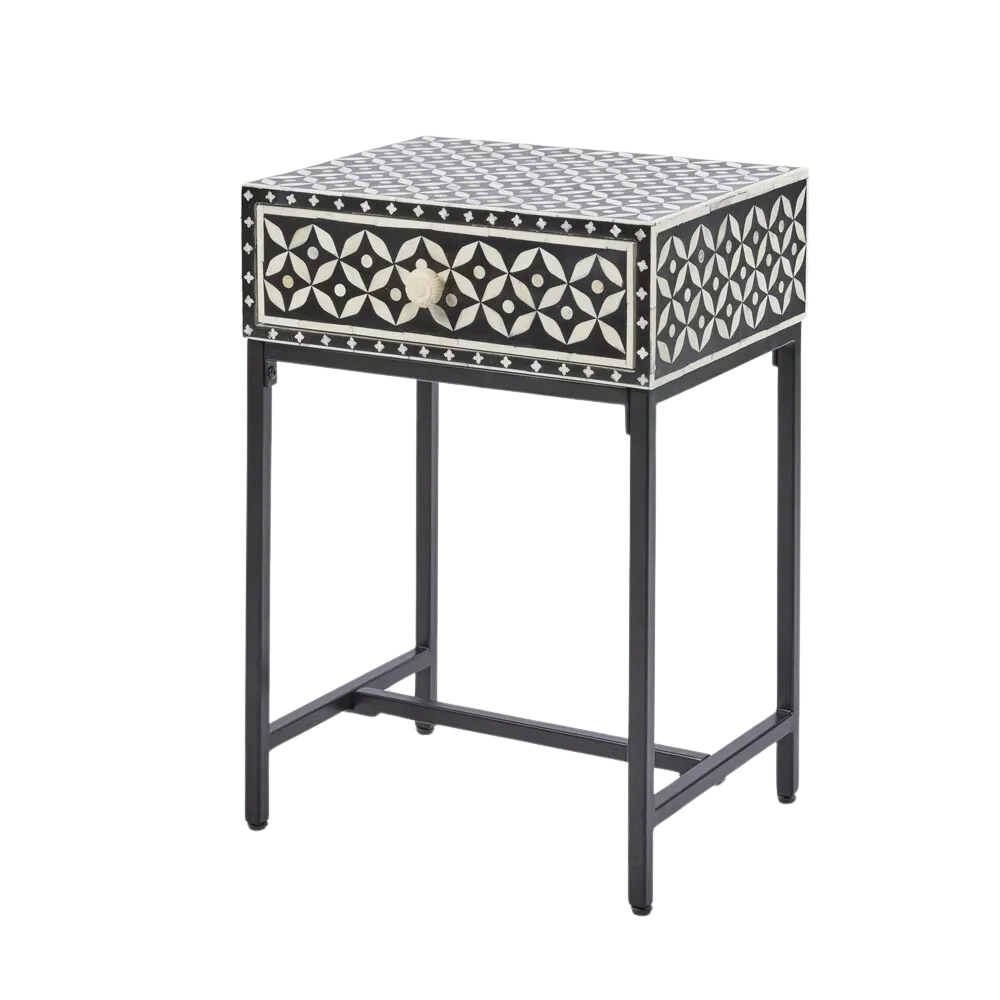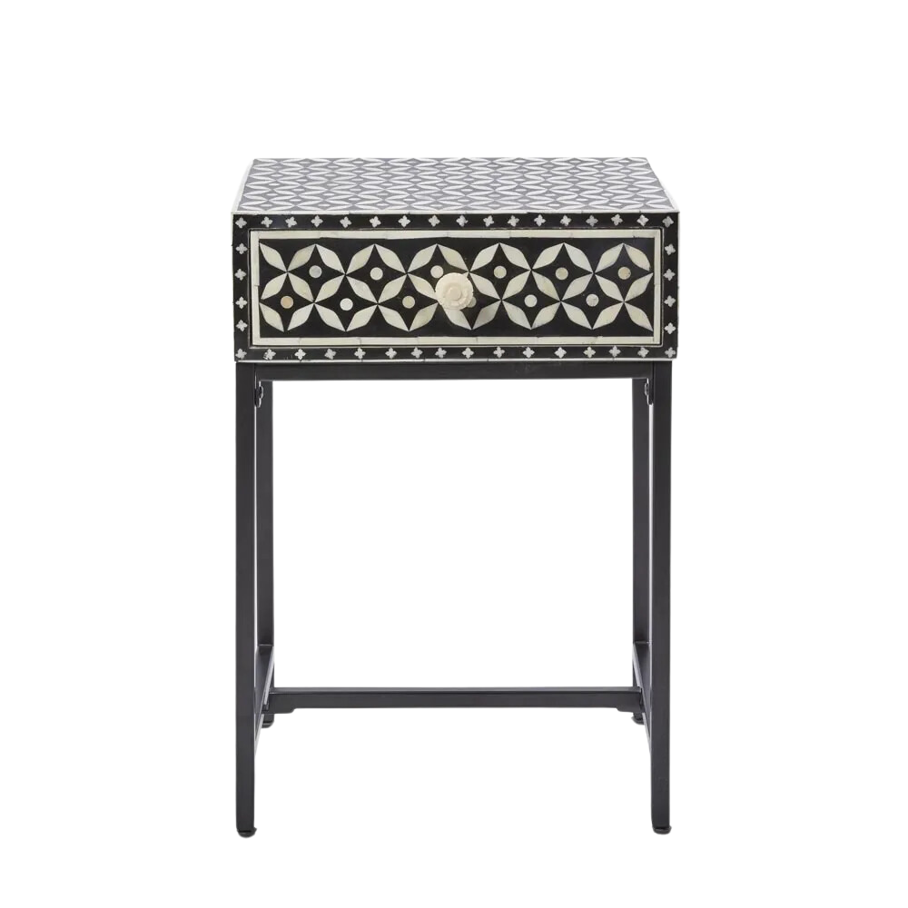 Stella Bone Inlay Bedside Table Black/White/Black Base