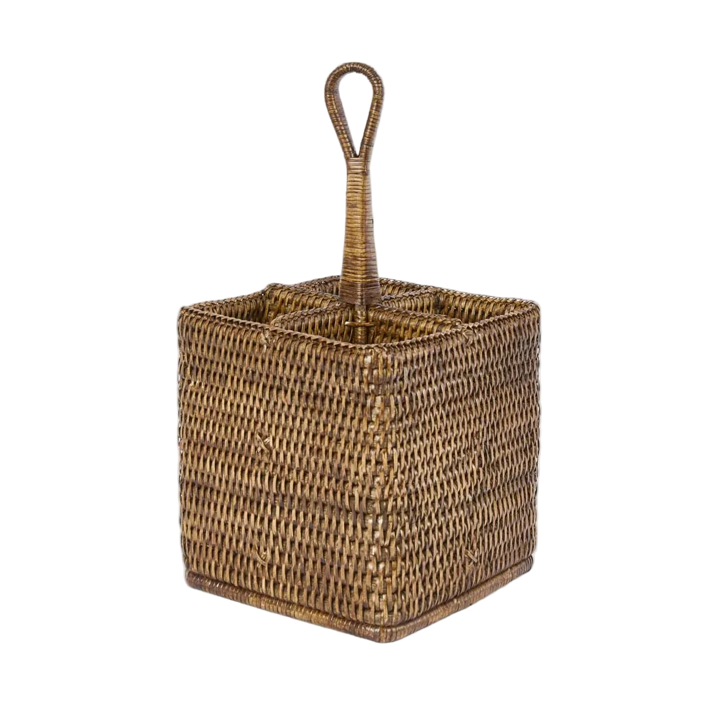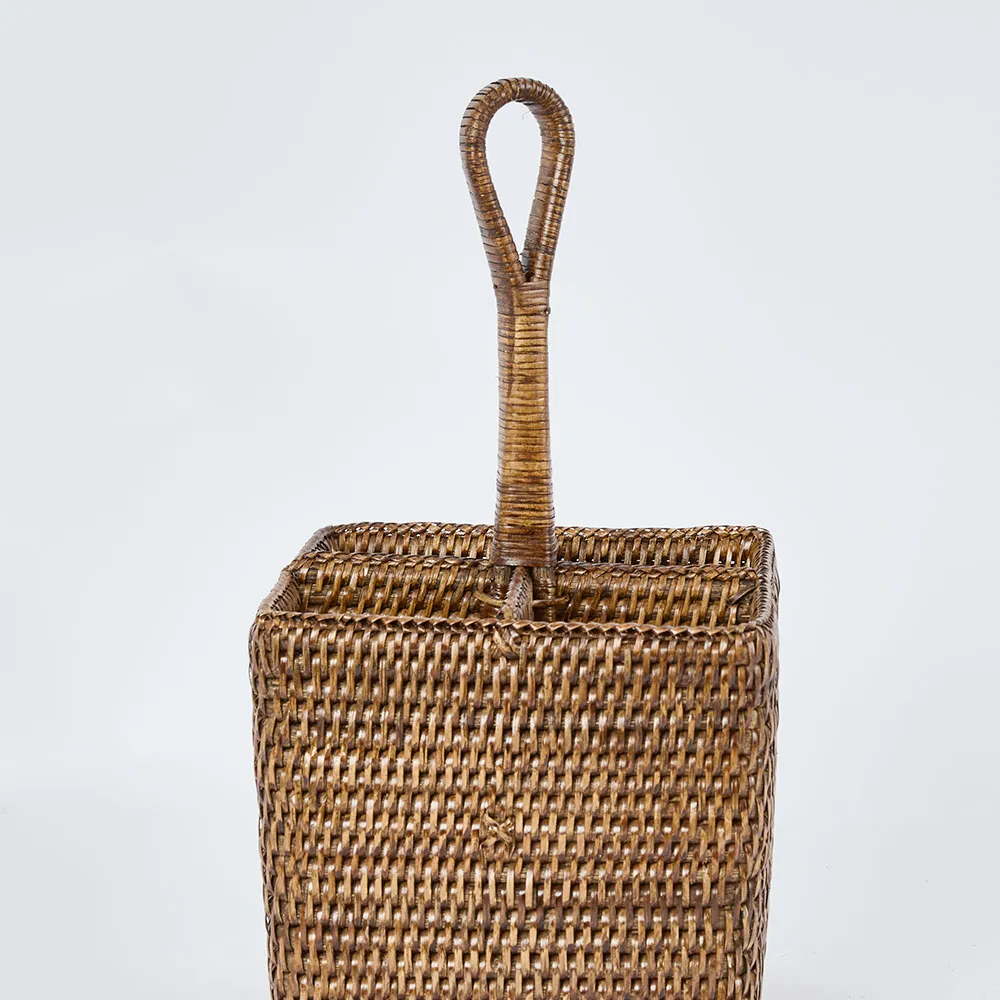 Paume Rattan Cutlery Tall Caddy Antique Brown