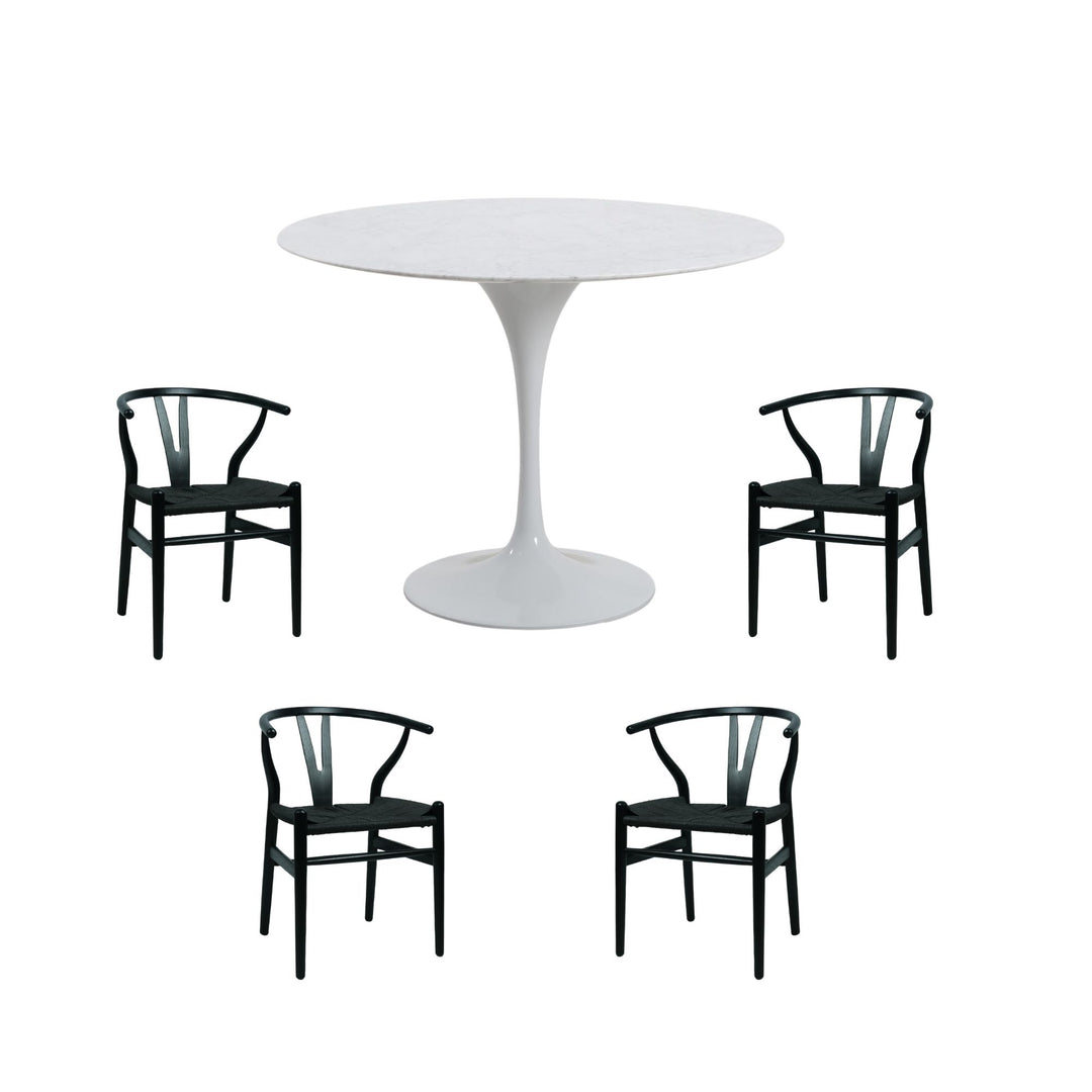 Aurora 5 Piece Dining Package - Oval Dining Table Marble White 100cm and 4 x Atlas Black Dining Chairs