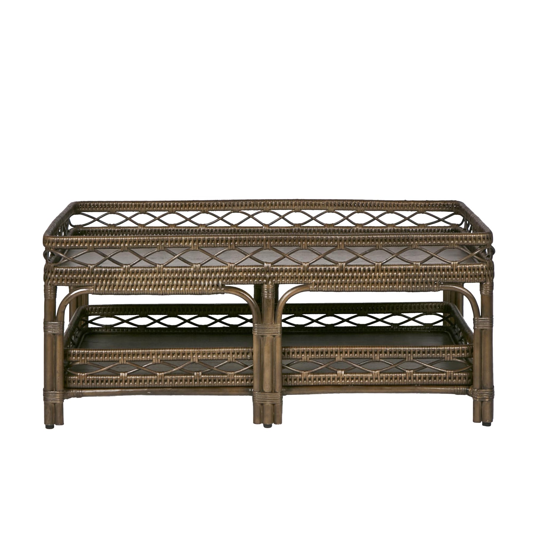 The Palm Cove 2 Tier Coffee Table is crafted with meticulous hand-woven rattan, offering a distinctive and durable design. It features a solid mango wood top and shelf, ensuring sturdiness and strength. This combination of materials provides both aesthetic appeal and functionality, making it a robust and stylish addition to any living room space.