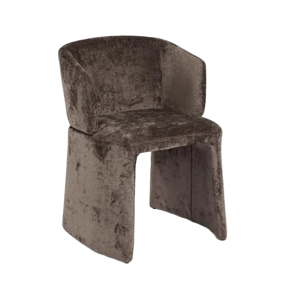 Dexter Dining Chair features a curved barrel back and fully upholstered frame to create a sculptural silhouette that blends style with comfort. With its generous cushioning and sleek lines, the Dexter offers the perfect balance between form and function — ideal for both intimate dining settings and sophisticated accent seating. Wrapped in sumptuous bronze chenille velvet upholstery, this chair’s soft sheen and plush texture elevate any dining or living space.