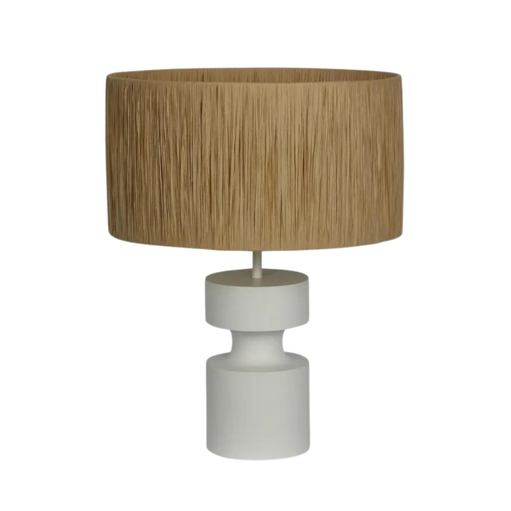 Illuminate your space with the Marni Lamp, a sophisticated and exclusive addition to any room. This small white lamp features a raffia shade, adding a touch of luxury and texture. Perfect for adding a tasteful and artistic touch to your home.