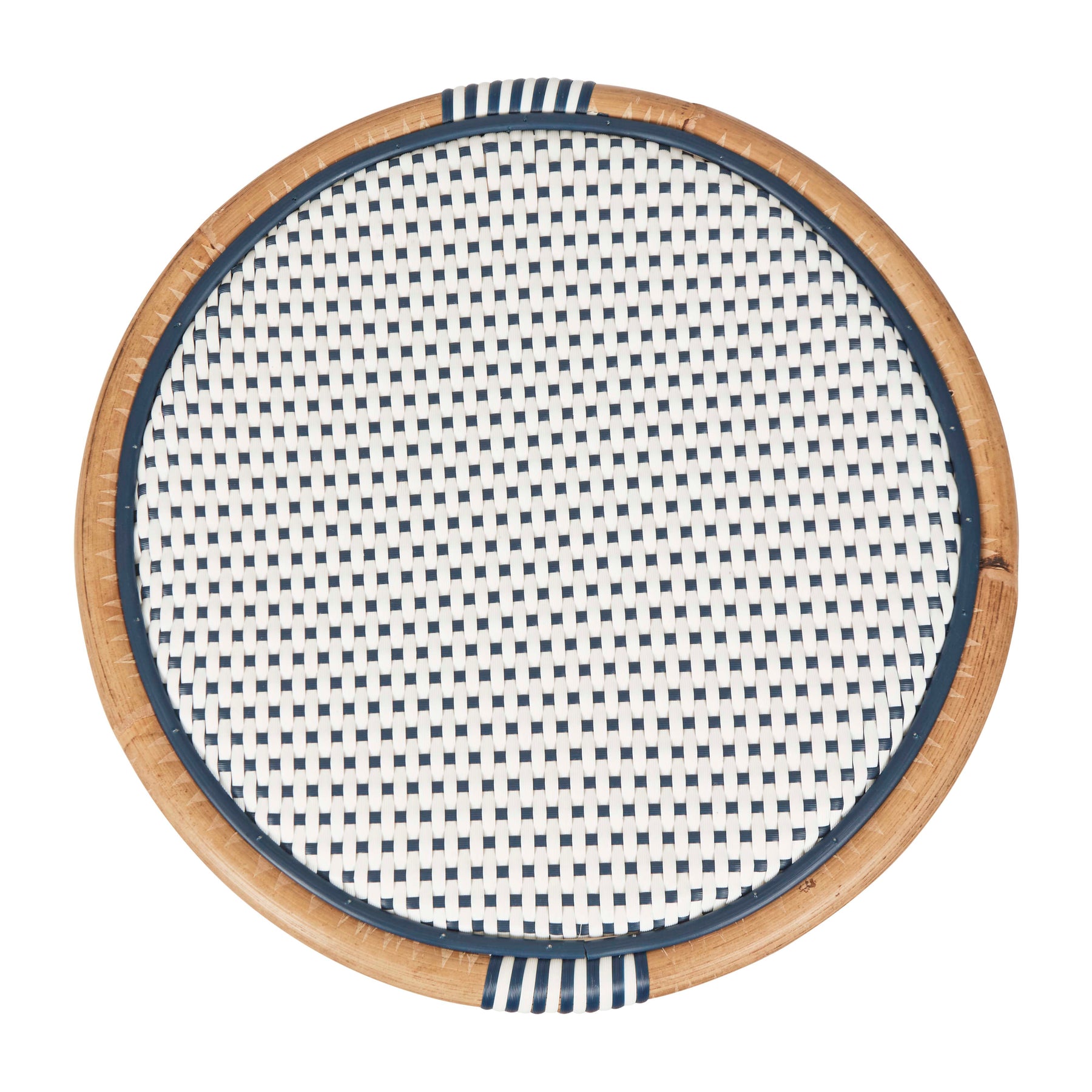 Introducing the Portsea Side Table in Navy & White, a stylish and versatile addition to any living space. This side table combines classic design with modern functionality, perfect for enhancing both indoor and outdoor settings. Key Features: Elegant Design: The Portsea Side Table features a striking navy and white color scheme that adds a touch of sophistication to any décor. The clean lines and contemporary design make it a perfect complement to a variety of interior styles. High-Quality Materials: Crafted from premium materials, this side table is designed for durability and longevity. The sturdy construction ensures it can withstand everyday use, while the weather-resistant finish makes it suitable for outdoor use as well. Versatile Functionality: Ideal for use in living rooms, bedrooms, patios, or garden areas. Whether used as a coffee table, bedside table, or accent piece, the Portsea Side Table provides both style and practicality. Compact and Practical: The compact size of the Portsea Side Table makes it perfect for smaller spaces, while still offering ample surface area for drinks, books, or decorative items. Its lightweight design allows for easy mobility and placement. Easy Maintenance: The materials used in the construction of this side table are easy to clean and maintain. Simply wipe down with a damp cloth to keep it looking fresh and new. Artisan Craftsmanship: Each Portsea Side Table is meticulously crafted with attention to detail, ensuring high quality and a beautiful finish. The handcrafted nature of this piece means each table is unique, with slight variations that add to its charm. Elevate your living space with the Portsea Side Table in Navy & White, where classic design meets modern versatility. Enjoy a piece that is not only a functional addition to your home but also a statement of refined taste and elegant style. Suitable for use in sheltered outdoor space and not exposed to rain.