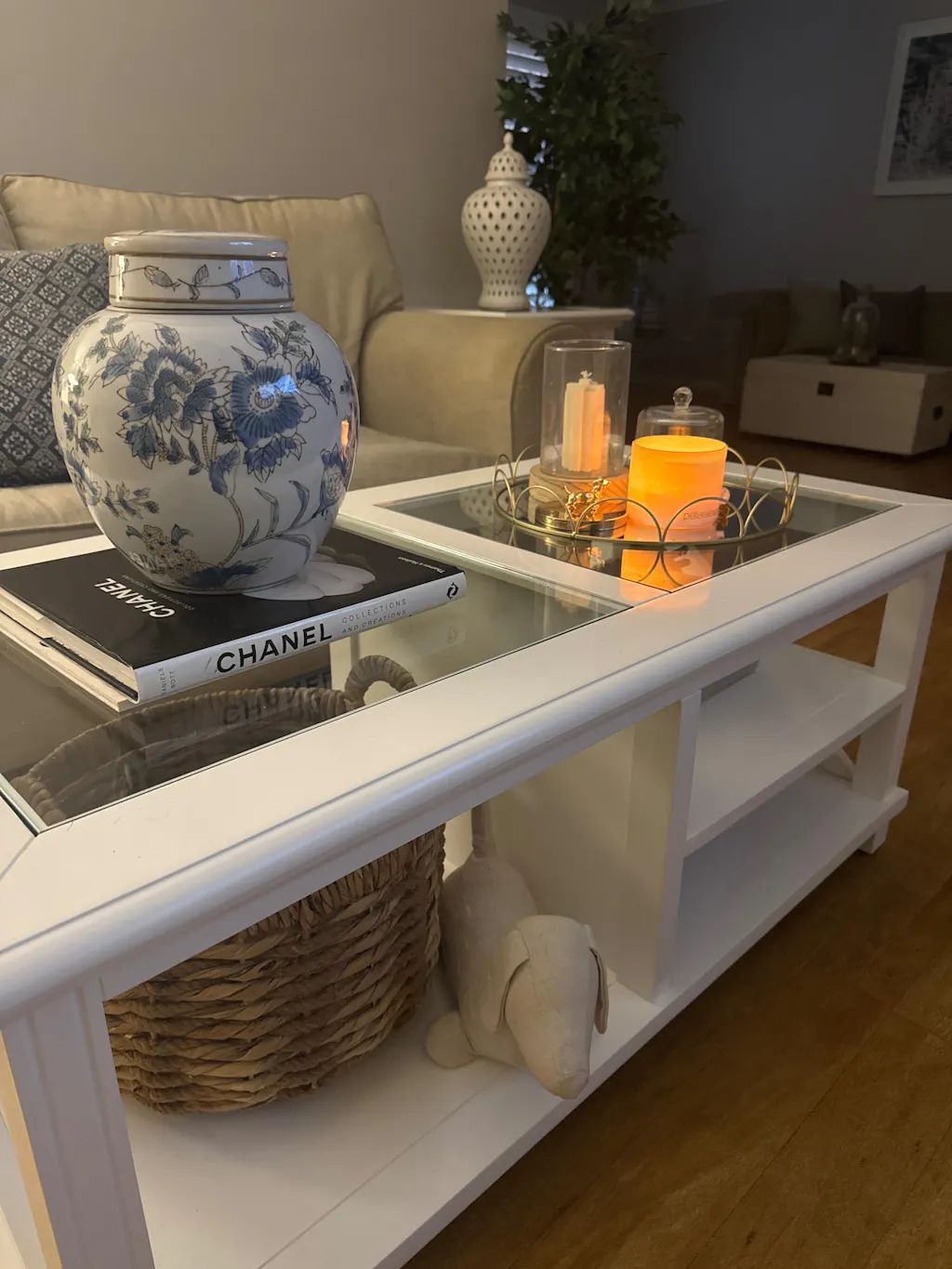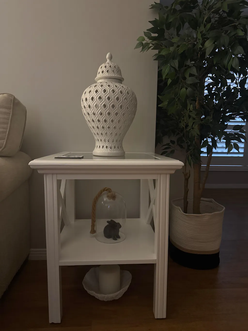 Sorrento Hamptons Square Side Table W/ Glass Top White