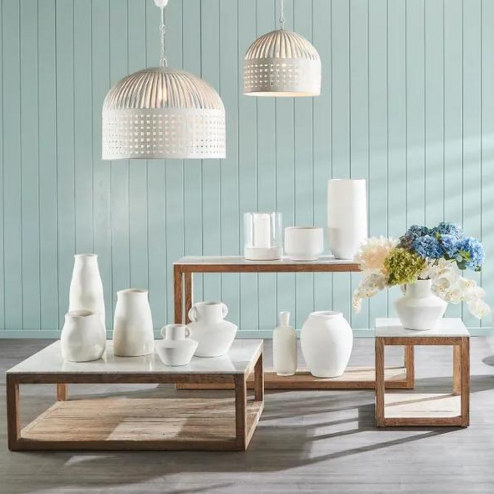 Capture the timeless elegance of this West Ceiling Pendant Medium White, perfect for adding a luxurious touch to any room. Handcrafted from sleek white polymer, this dome-shaped pendant radiates sophistication, creating a soft, serene atmosphere. Experience the delicate beauty of this medium-size pendant today.