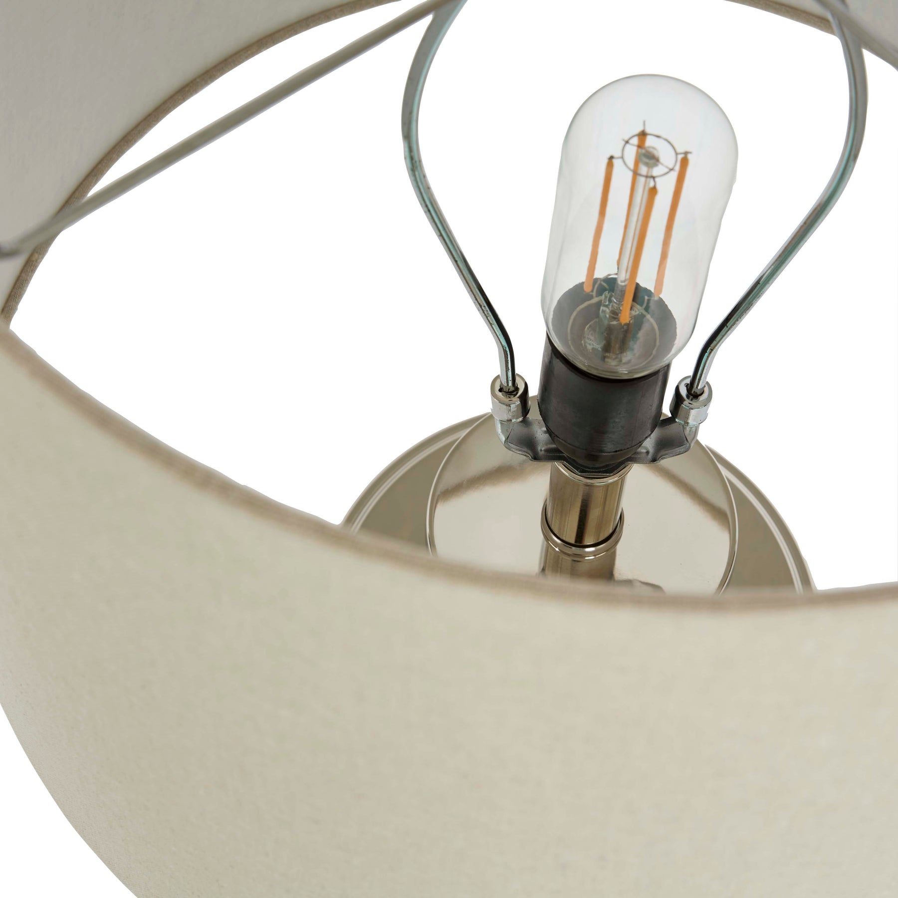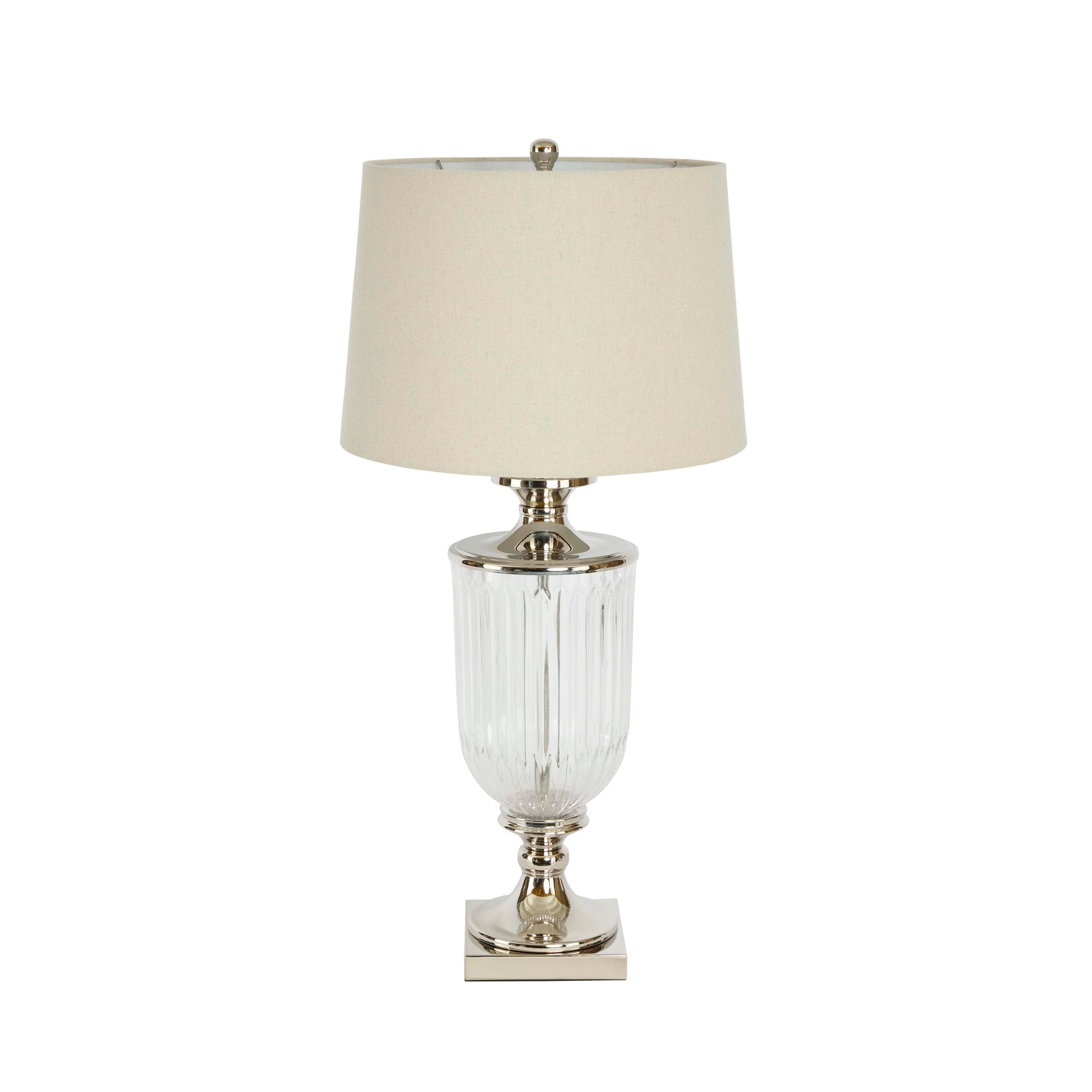 Bellevue Glass Nickel Lamp With Natural Linen Shade