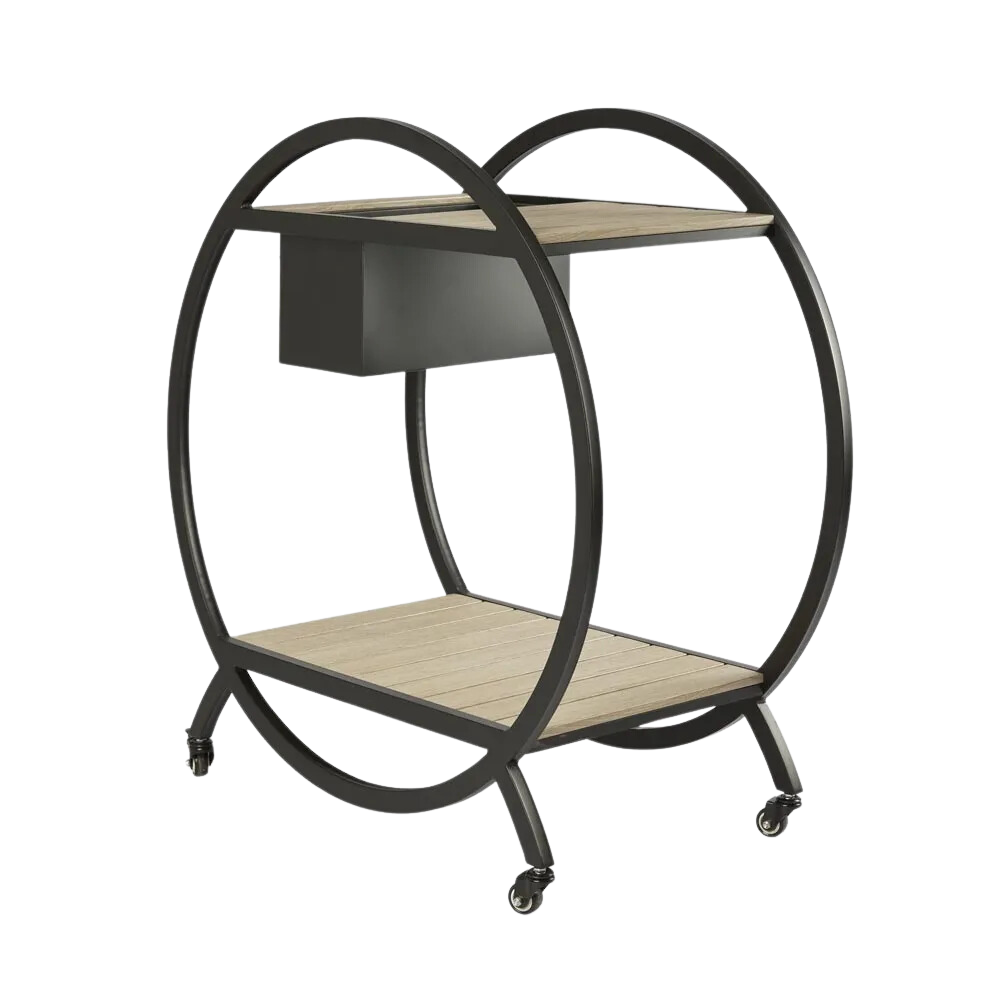 Our new Ryder Outdoor Bar Cart will feature at your next big event. Featuring a removable stainless steel ice tub to keep your beverages crisp on a hot day. Castor wheels for easy manoeuvring, all weather composite wood top & base surfaces.This bart cart is perfect partner to help keep your guests refreshed. For longer life store out of direct sunlight.