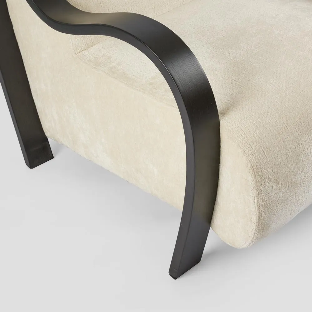 The Apollo Armchair in Ivory & Black is an elegant design featuring a scrolling silohette arm & leg design crafted in bent plywood. Soft to touch upholstery enhances the chair providing a cosy seat to relax in. This classic contempory armchair will make a statement in any room.