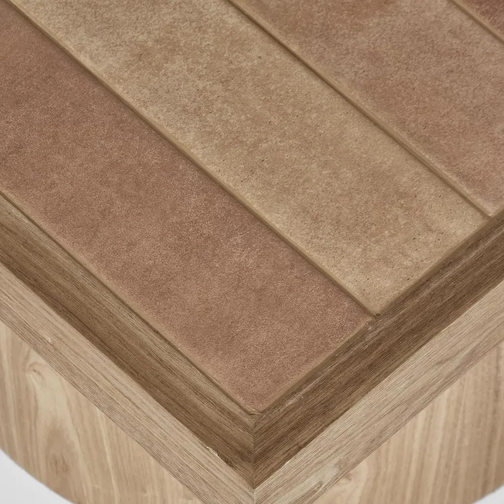 Introducing the Atelier Coffee Table, a stunning centerpiece that combines contemporary design with artisanal craftsmanship. This coffee table features a meticulously hand-laid tiled top and an elegant oak veneer, perfect for adding a touch of sophistication to any living space. Key Features: Hand-Laid Tiled Top: The Atelier Coffee Table boasts a beautiful hand-laid tiled top, creating a unique and eye-catching surface. Each tile is carefully selected and placed by skilled artisans, resulting in a one-of-a-kind piece with a striking mosaic effect. Elegant Oak Veneer: Crafted with a high-quality oak veneer, the coffee table offers a sleek and stylish finish. The natural oak veneer showcases the wood’s rich grain, adding warmth and texture to the contemporary design. Contemporary Design: With its clean lines and modern aesthetic, the Atelier Coffee Table fits seamlessly into a variety of interior styles. Whether placed in the center of your living room or as an accent piece, it enhances your décor with its sophisticated presence. Versatile Functionality: Ideal for both everyday use and special occasions, this coffee table provides ample surface space for beverages, books, and decorative items. Its versatile design makes it a practical and stylish addition to any living area. Sturdy Construction: Built to last, the Atelier Coffee Table features a robust frame that ensures stability and durability. The combination of the solid structure and quality materials guarantees long-term use and enjoyment. Easy Maintenance: The tiled top and oak veneer are easy to clean and maintain. Simply wipe down with a damp cloth to keep the table looking fresh and new. The durable materials ensure that the table remains in excellent condition over time. Artisan Craftsmanship: Each Atelier Coffee Table is handcrafted by skilled artisans, ensuring high quality and attention to detail. The handcrafted nature of this piece means each table is unique, with slight variations that add to its charm. Elevate your living space with the Atelier Coffee Table in Natural, where contemporary design meets artisanal craftsmanship. Enjoy a piece that is not only a functional addition to your home but also a statement of refined taste and modern elegance.