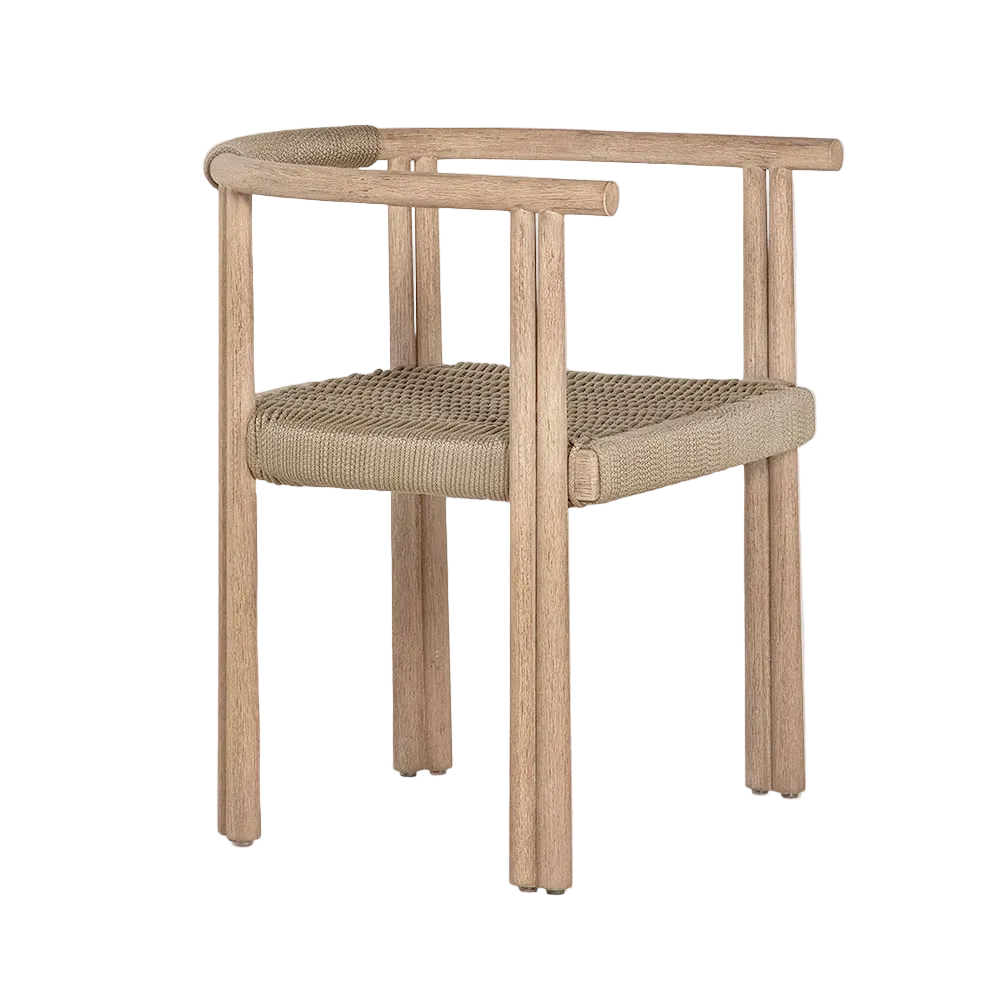 The Forma Outdoor Dining Armchair blends contemporary design with durable craftsmanship, perfect for stylish outdoor dining. Crafted from solid eucalyptus wood with handwoven rope detailing, it offers both comfort and longevity. Its sleek, neutral design complements the Forma dining table and other outdoor furniture, creating a stylish, cohesive dining experience.