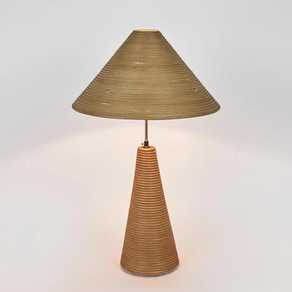 The ultra chic Rocky lamp range, creates a bold statement in any interior.Taking classical forms and re-inventing them with the beauty of natural rattan.Featuring an adjustable neck- the shade height can be adjusted within an 18cm range to desired look or level of light cast. Maximum Wattage 40W Operated with inline switch. Cord length 1.8m with switch located 40cm from base. Also available as a Floor lamp and bedside lamp.
