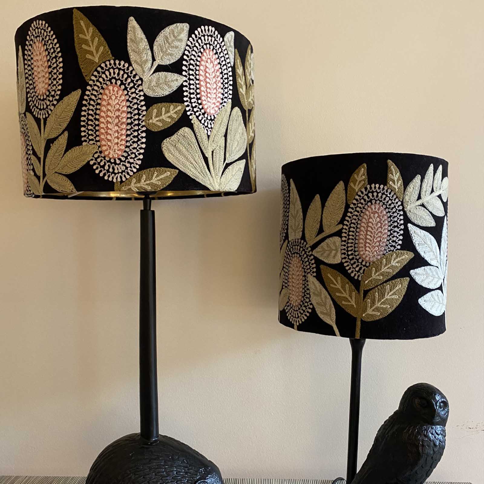Velvet Drum Shade - Banksia - Black Multi Large