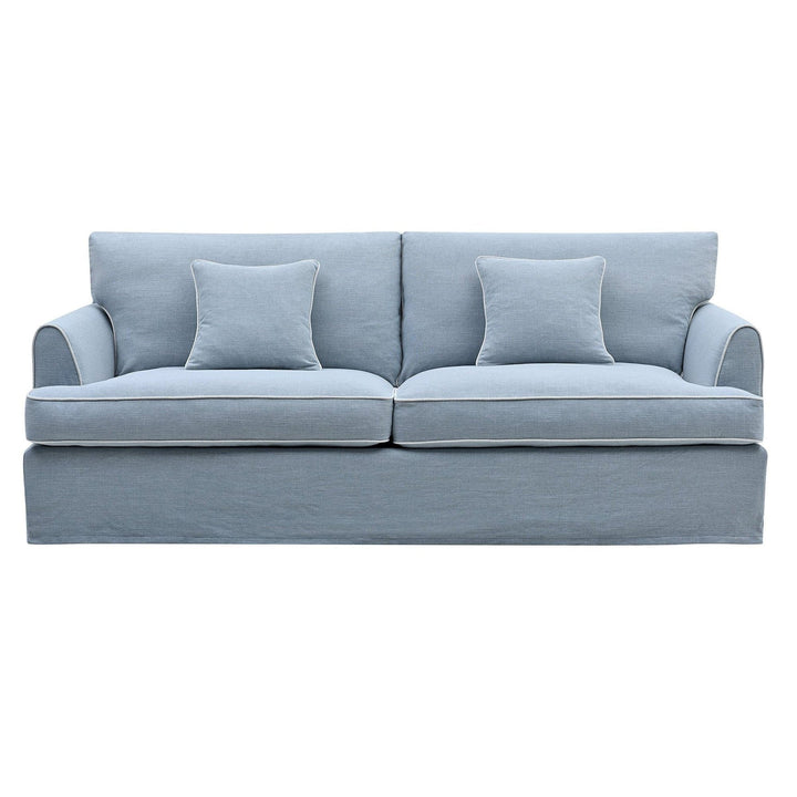 Modern design meets timeless taste with this updated take on an upholstered 3 seat sofa. The Byron Slip Cover for a 3 seater sofa offers a soothing colours. It's a contemporary reimagining of coastal living.