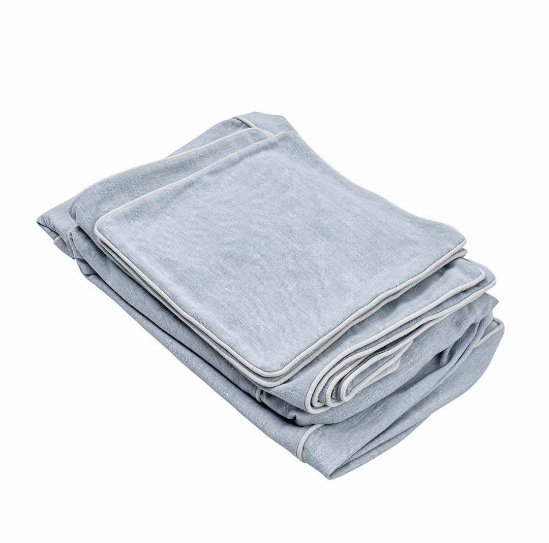 Transform your Noosa naked sofa base into a luxurious piece of art with our Slip Cover in grey fabric and elegant white piping. Elevate your home decor to another level with this exclusive and sophisticated addition. Easy to change, yet providing a high-end touch to any room.