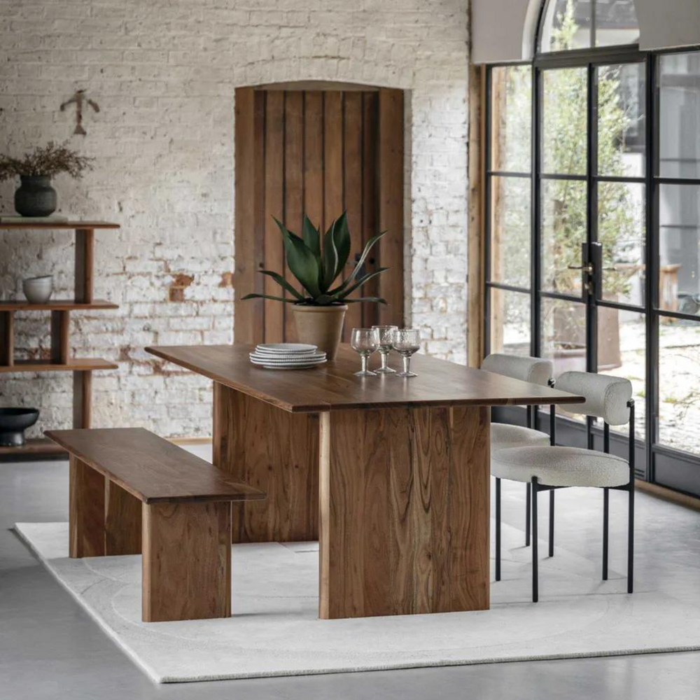 Introducing the Borden Dining Table, a rectangular masterpiece handcrafted with natural hues. Elevate your dining experience with this elegant and exclusive piece, perfect for hosting sophisticated gatherings. Make a statement in your dining room with this luxurious addition.