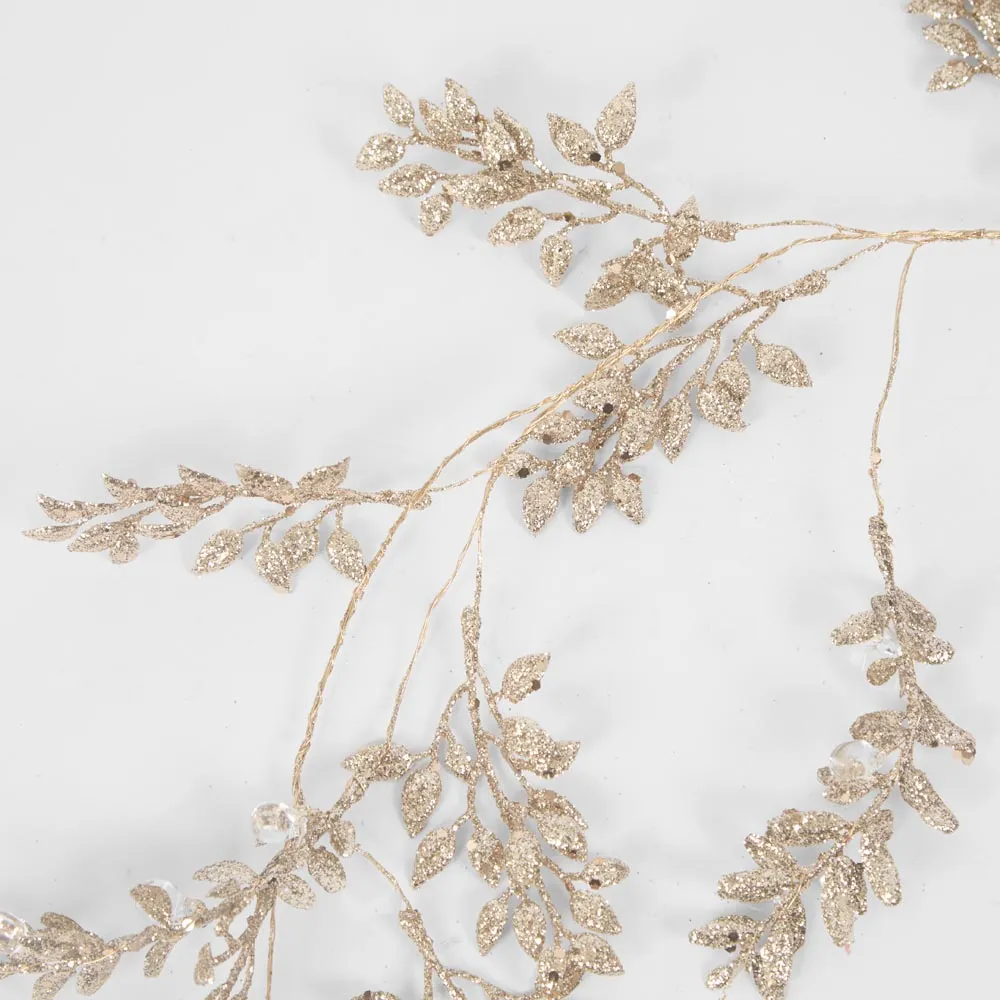 Glitter Leaf and Crystal Berry Garland Gold