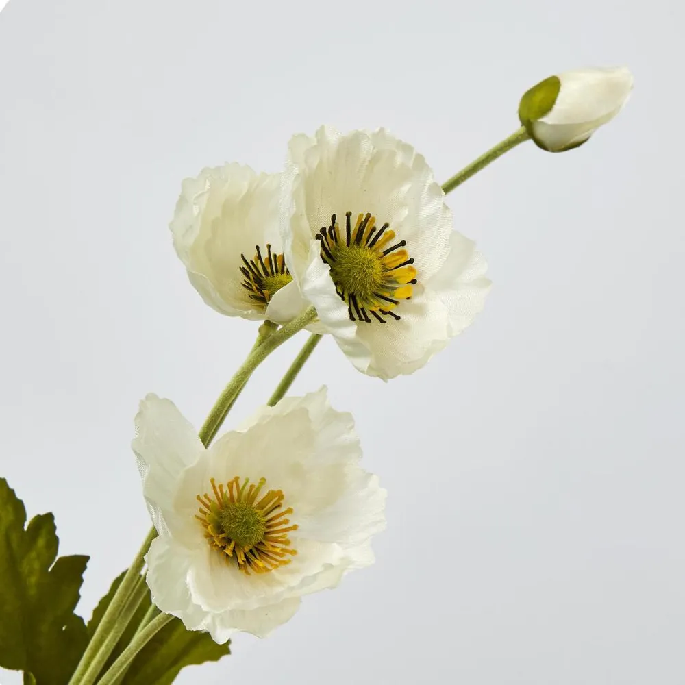 White Poppy Spray 3 Flowers 1 bud